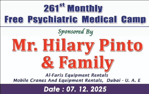 261st Free Psychiatric medical Camp will be there on Sunday 07 th December 2025 @ Rotary Shankerpura Bhavana, at 9.00am in Rotary Shankerpura Club.