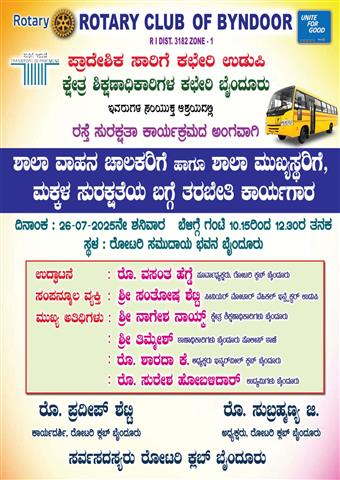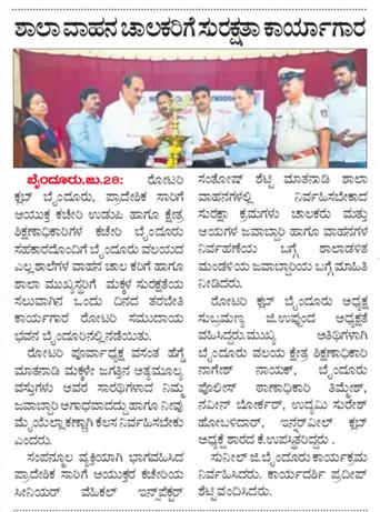 TRAINING ABOUT ROAD SAFETY WAS CONDUCTED FOR ALL THE SCHOOL VAN DRIVERS OF BYNDUR TALUK. RTO INSPECTOR SANTHOSH WAS THE RESOURCE PERSON