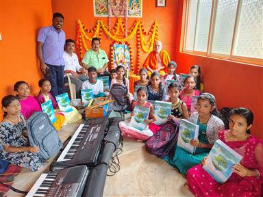 UNIFORM SETS WERE DISTRIBUTED TO STUDENTS OF RAMAKRISHNA KUTEERA UNDER THE SPONSORSHIP OF CLUB PAST PRESIDENT RTN PRAKASH BHAT