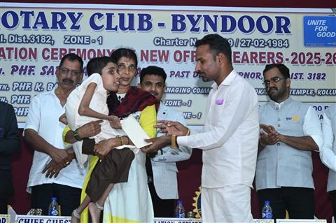 FINANCIAL AID WAS HANDED OVER TO PHYSICALLY DISABLED SCHILD UNDER THE SPONSORSHIP OF CLUB MEMBER RTN GOVINDA BABU POOJARI