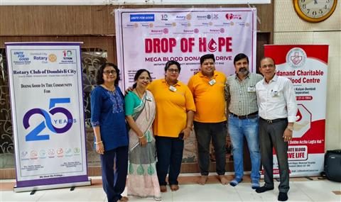 “Drop of Hope” was a joint blood donation drive organised by Rotary Clubs of Dombivli, Dombivli Downtown, Dombivli Uptown, Dombivli City, Dombivli North, Dombivli Suncity, and Dombivli Winners to address the critical need for blood in local hospitals. In collaboration with certified blood banks, the drive successfully collected 44 bottles of blood, potentially saving over 120 lives. The initiative saw active participation from Rotarians, citizens, and youth volunteers, who were educated about the importance and safety of voluntary blood donation. Awareness campaigns and seamless coordination helped encourage first-time donors and build community trust. This united effort not only fulfilled an immediate healthcare need but also demonstrated the collective spirit of Rotary. Going forward, the participating clubs aim to conduct this as a recurring initiative to strengthen the city’s emergency medical infrastructure.