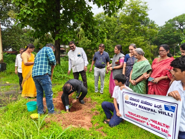 11 MEMBERS OF RCMH, TEACHERS, STUDENTS OF EMH SCHOOL, DIGNITARIES AND GUESTS, PLANTED 5 MEDICINAL PLANT (NEEM) IN SCHOOL CAMPUS OF ENH SCHOOL. KUNJIBETTU, ON 26 TH JULY.